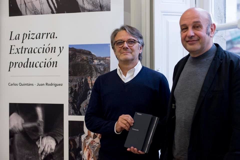 El prestigioso arquitecto coruñés Carlos Quintáns, que es el autor de los textos y el responsable de la línea editorial, presentó esta mañana a los asistentes la obra explicando que “con la obra Pizarra. Extracción queríamos mostrar la capacidad plástica que tiene esta piedra ornamental, así como ofrecer una visión de conjunto de las canteras o de fragmentos de algunas de sus partes. Para ello, el conocido fotógrafo Juan Rodríguez visitó las instalaciones de varias empresas pizarreras para plasmar en imágenes la profunda belleza visual que ofrece esta piedra ornamental”.