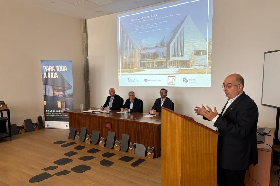 El Clúster da Pizarra de Galicia y la Escuela Universitaria de Arquitectura Técnica de A Coruña (EUATAC), celebraron hoy en el Salón de Grados del mencionado centro educativo, una jornada técnica con título “La pizarra gallega en la construcción”. En una sala que llenaron más de 50 profesores y alumnos de los dos últimos cursos de esta titulación académica, se analizaron, entre otros temas, el uso actual de este material en obra, sus características únicas y las razones de peso para su elección, la relación de la pizarra con el medio ambiente y la sostenibilidad, y los principales desafíos a los que se enfrentará en el sector de la construcción, en los próximos años.