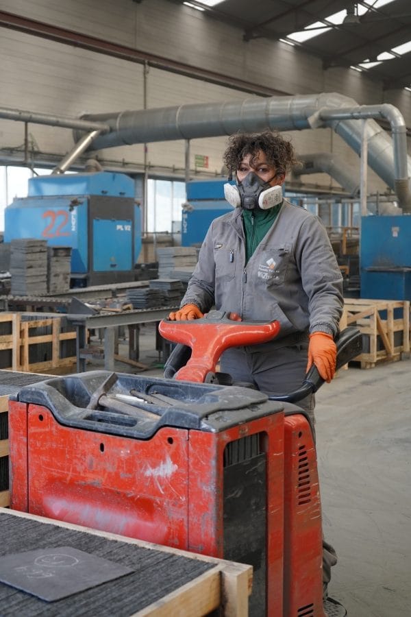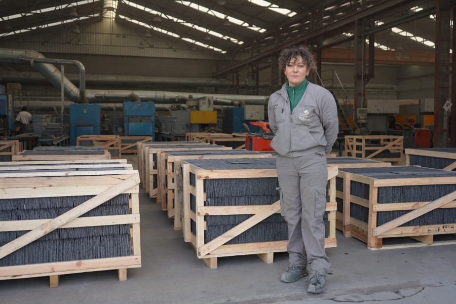 Noelia Pérez Casas es encargada de nave en Vazfer y ella también ha abierto camino. Su mirada viva y su forma de moverse la delatan, estamos ante una persona hecha a sí misma, para la que la vida no ha sido fácil y que hoy está donde está porque como ella misma dice “me lo he ganado”. Porque organizar el trabajo en una nave requiere conocimiento y ganas “a partes iguales”, querer progresar “y aprender cómo funciona el puente grúa, la carretilla o aquella nueva máquina que no sé cómo funciona”.